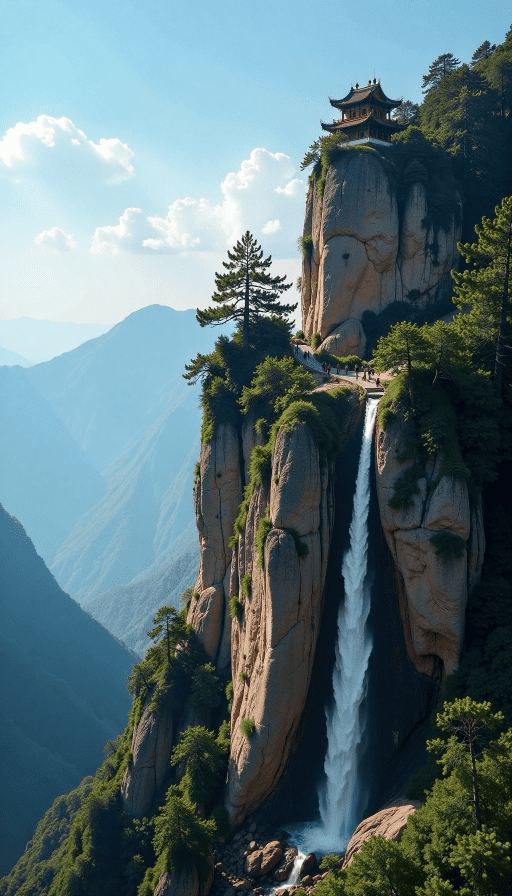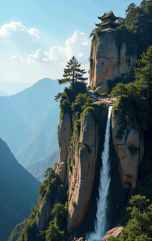 √ Dongfeng Chaoyang Peak: There are more than 10 landscapes on the peak, the most famous of which is the Xianzhang Cliff on the side of the stone building. From a distance, it looks like a huge palm and is listed as the first scene of the eight scenic spots in Guanzhong. This is the origin of the story of the giant spirit god opening mountains and guiding rivers.