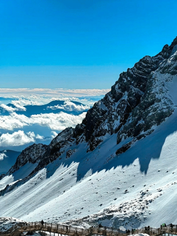 14:30 Take the environmental protection vehicle (cost included) to the lower station of the ropeway, then wait for the ride on the Jade Dragon Snow Mountain Glacier Park Grand Ropeway (cost included, the ride time is about 20 minutes), climb up to the glacier park, and visit the top of the snowy land closest to the equator, the Grand Ropeway is China's highest altitude passenger ropeway for tourists, soaring from the altitude of 2,000 meters to 4,506 meters, arriving at the ropeway's Upper Station and come out on top of the platform to see the stone monument marking the arrival at an altitude of 4,506 meters as well as the magnificent view of the glacier park. Afterwards, you can continue to hike along the stepped glacier trestle to the higher altitude of the snowy area, challenging the limit of 4680 meters and surpassing yourself.